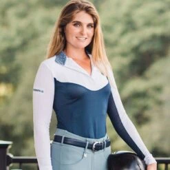 Romfh Women’s Classic Long Sleeve Show Shirt – White/Light Grey Logo