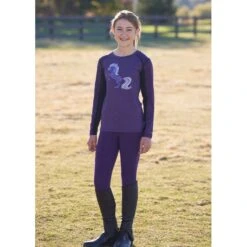 Kerrits Kids’ Encore Long Sleeve Show Shirt – White/Lucky Diamond