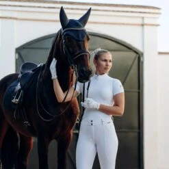 The breathable B Vertigo Adara training shirt is made from quick-drying material. Ribbed sides provide the perfect fit. However you need it, the front zipper can add ventilation or warmth. Raglan sleeves and the lazer cut back logo look sporty and cool. Combine this shirt with our B Vertigo Adara riding tights for a full outfit.