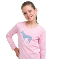 Natural fibers provides comfort and durability. Shine in this beautiful t-shirt, wherever you are in the stable or in the school! It features a crew neck and cap sleeves, finished with blue crystal horse decoration on the chest.