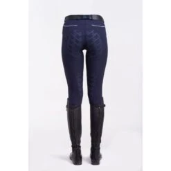 These breeches combine elegant styling with Lightweight performance fabric and Meryl Fiber Technology. Developed for active wearing, quick-drying, and exceptional comfort during the competition. These riding breeches fit all shapes and heights and enhance the mobility of knees due to the specialized side paneling. The silicone print on the seat provides a secure grip in the saddle and more consistent leg position without the added bulk of a full-seat layer. Additional silicone grip on the elasticated waistband gives fixed hold on the waist even under extreme movement during exercises. Complete with contrasted single and wide belt loops, back and deep front pockets with contrasting piping, a stretch lycra sock on the bottom of each leg what allows boots to slip on with ease.