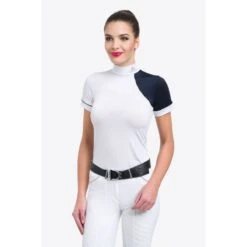 The new version of the Dame has replaced the dotted lace with colored lightweight technical fabric. This show top is super flattering and creates a perfect silhouette under your show coat. The technical fabric provides maximum comfort with stretch, fit, and wicking properties.