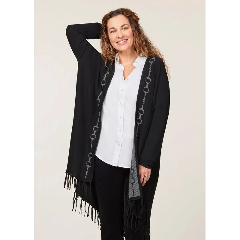 Conversation flows as easily as the fringed hem when guests glimpse the bitted equestrian trim, a pretty peek into your deepest passion. Elegant and easy to style, this poncho delivers luxury layering.