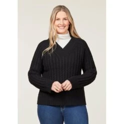 With cozy, cable knit detailing and a flattering silhouette, here’s one sweater you’ll pulloverand over! Layer under a jacket or over a button down for limitless looks. Crafted from a cozy wool blend, this V-neck wins the ultimate versatility award in your capsule wardrobe.