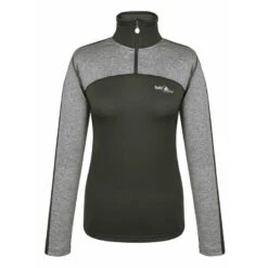 This technical shirt has long sleeves, a 1/4 zip and a tall collar. It is made of warm yet breathable fabric. The Zipper has a decorative pull.