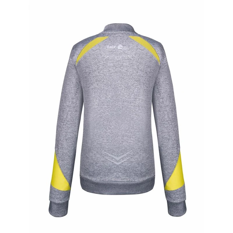 This full front zip sweatshirt is made of lightweight material, with mesh inserts. The fabric is elastic, breathable, and provides UV protection. The reflective details will keep you safer during morning and evening hacks.