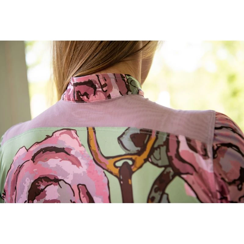 This classic tech shirt features a quarter zip front with tab collar. The yoke is fine mesh to keep you cool while the body of the shirt is a four way stretch moisture wicking tech fabric. With your choice of bold floral pattern or solid with FITS back logo, you are sure catch the eye in your next clinic or cross country run!