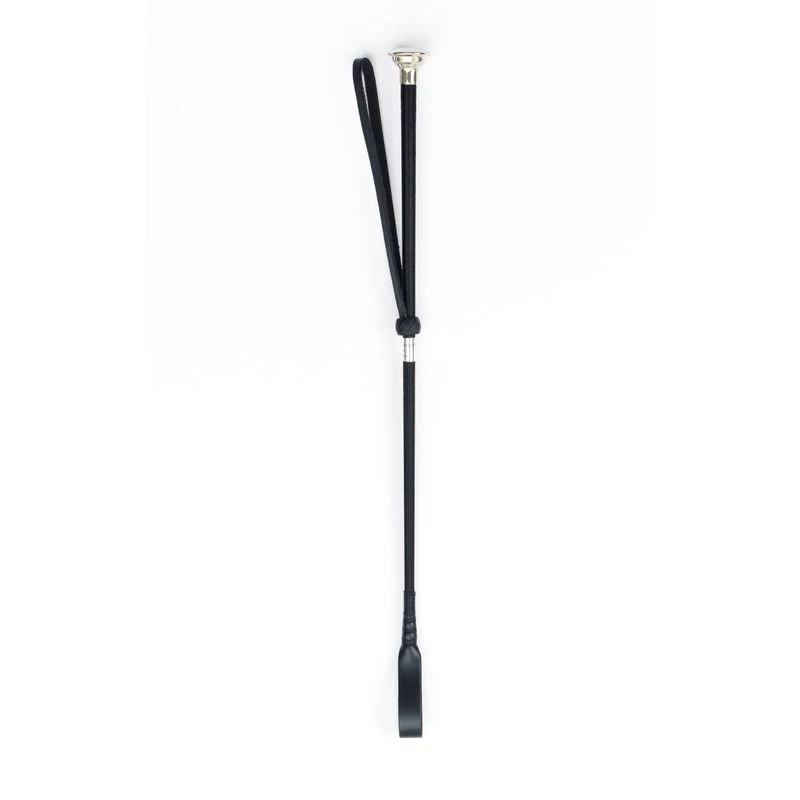 Woven nylon crop with nickel end cap and strap. Made in England