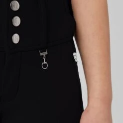 Horze Andrea breeches are decorated with flattering seams down the front that elongate your legs. The waistband with three buttons is higher in the front, adding a stylish detail. Two zipper pockets offer space for your belongings, and the silicone full seat holds you in the saddle.
