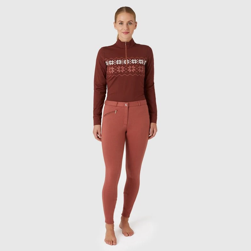 The Horze Women’s Active Full Seat Breeches with Silicone Grip feature a jersey-feel fabric that gives these schooling breeches soft comfort. These riding pants are a nice choice when you dont want the formality of other high-end breeches. The soft fabric is warm, breathable, and ideal for afternoon rides in the arena or on long trail rides. The simple zipper pocket in the front will hold a single horse treat for rewarding a nice ride. You will love the comfort of these pretty breeches.