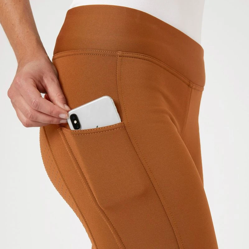 The soft, breathable fabric with brushed fleece lining is ideal for holding warmth in to keep you feeling cozy even on cold weather rides. The mid-rise waist is perfect for layering and the simple front closure wont feel binding in the barn or in the saddle. For added security, the silicone full seat adds a little extra grip to keep you secure in the saddle on those days when your horse is feeling a little frisky.