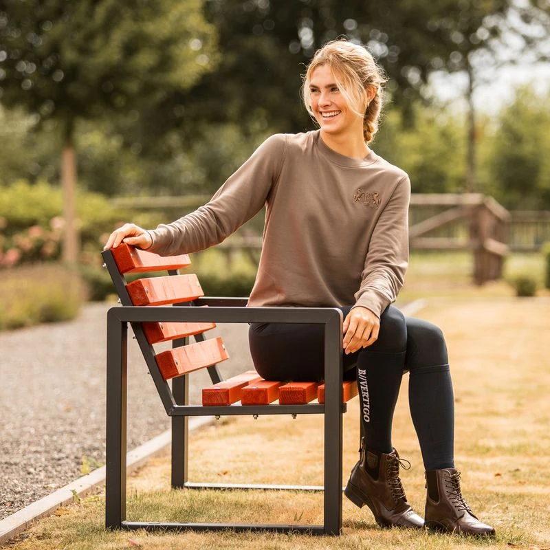 Our B Vertigo Erica sweatshirt is made from sustainable bamboo fabric that is comfortable and soft. The easy fit is perfect for riding or wearing in your free time. Ribbed collar and cuffs keep the warmth in. Pair it with your favorite breeches for a stylish outfit!