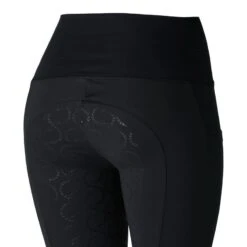 The Horze Gillian tights are made from firming material with compression functure. They give your legs the ultimate support while riding. A high waist keeps them in place and is perfect for tucking in your shirt. The silicone full seat ensures great grip to the saddle. Two thigh pockets keep your phone safe. Choose from muted or bright colours what fits your style best!