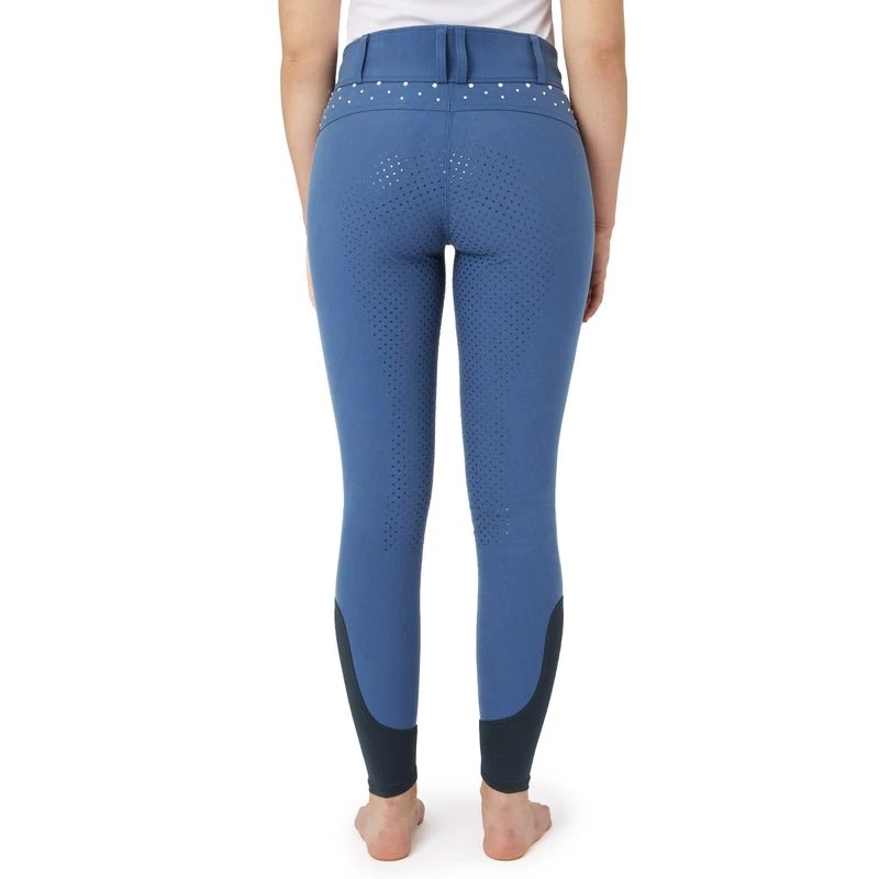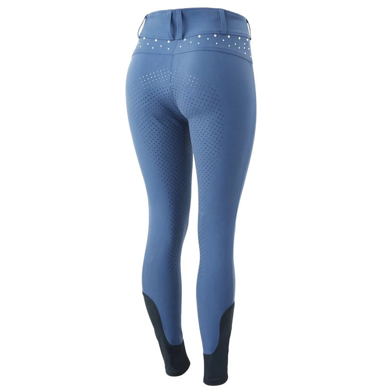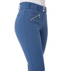 These affordable breeches are made with a high waist that is flattering and keeps them in place. The silicone full seat keeps you safely in the saddle. Elstastic leg bottoms fit comfortably under your favourite boots. Beautiful rhinestones along the back add a subtle shiny detail.