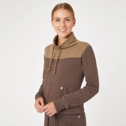 The Horze Jade sweatshirt is soft and elastic. The two-toned design gives a sporty vibe. The high collar with draw string adds warmth when needed. A kangaroo pocket keeps your hands warm and your belongings safe. Combine this sweatshirt with your breeches or riding tights for an easy riding outfit!