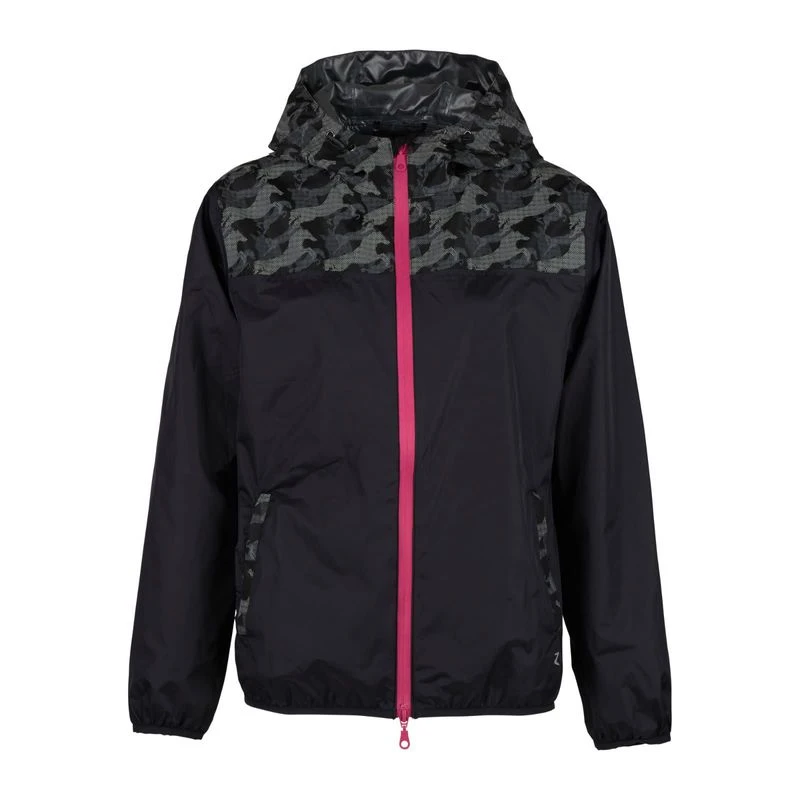 The Odette Rain Jacket does not only keep you dry, it is also designed in modern colours that provide a great look. The allover horse print has reflective qualities that ensure you are seen in gloomy weather. The cut gives a nice silhouette while also offering enough room to wear a t-shirt or jumper underneath. A waterproof zipper at the front makes sure no moisture gets inside. Zipper pockets keep your belongings safe and dry while riding.