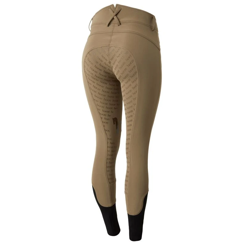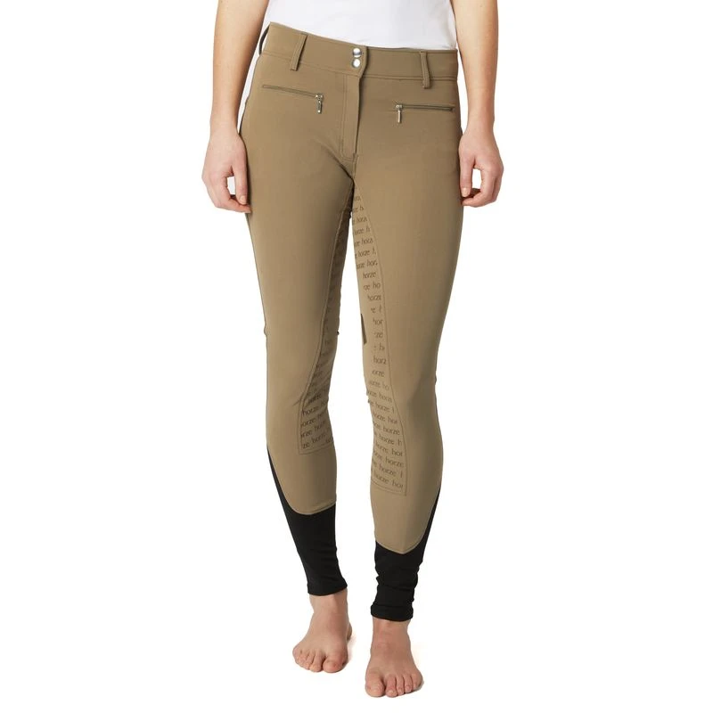 The Women’s Melody Full Seat High Waist Breeches are comfortable and stylish breeches. These high waist riding pants include a silicone print in a fun pattern which adds grip where you need it most. The crisscross belt loops make these women’s breeches a great choice for schooling. Two front zipper pockets hold keys or treats and the elastic lower leg offers comfort under tall boots. Melody Full Seat Breeches are designed with a front zipper and are made from breathable fabric that is slightly stretchy for added comfort in the saddle.