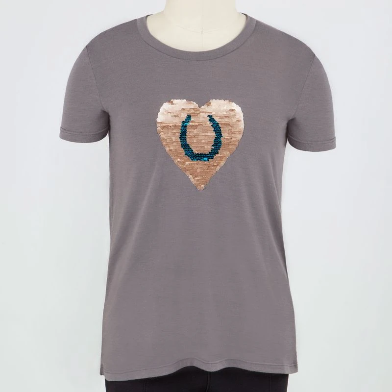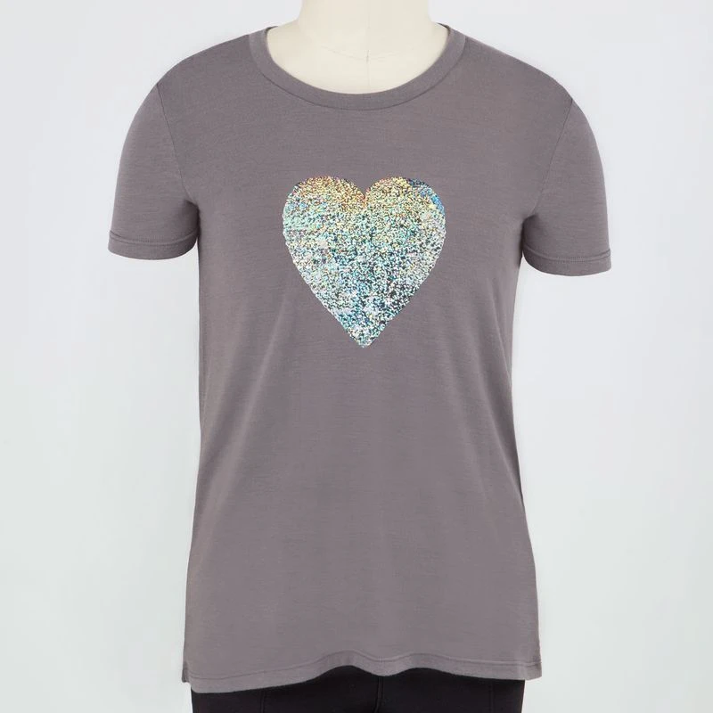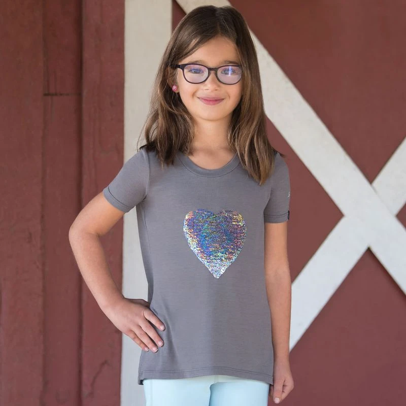 Let your child share her heart with the Flip Sequin Heart Swing Tee from Irideon.