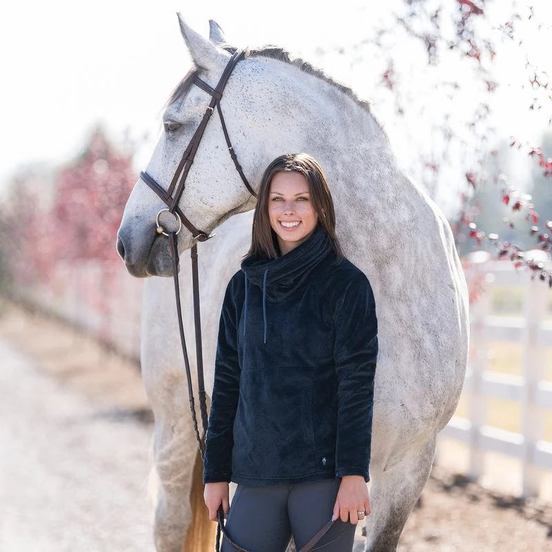 Feel bundled up with the Luxen Fleece Pull Over! Its super cozy high cowl neck with draw strings keep warmth in and cold air out. Its signature Luxen Fleece faux fur fabric provides a soft touch and a perfect amount of cozy. A fun kangaroo pouch pocket with a hidden phone pocket keep essentials secure and out of the way. Leaving room for your hands to stay warm and cozy without the fuss!