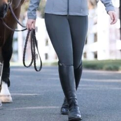 The Power Stretch Knee Patch Tights include a soft, fleecy interior that provides warmth and insulation. These stretchy and comfy riding pants are designed and patterned in the saddle for the perfect fit with body-contouring panels. Also, no-chafe, overlocked with edge stitch seams present a flattering, tailored look. The Chamisoft knee patches allow for a non-slip performance, and the 1.5 inch no-roll waistband keeps you in comfort U.S. Pat. D483,551 and additional patents pending. Material: Polartec Power Stretch – 64% polyester, 24% nylon, 12% spandex. Made in the USA.