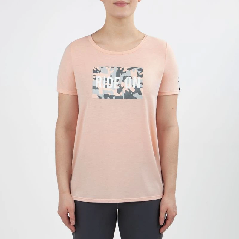With simple yet sophisticated graphics the RIDE ON tee is perfect for whatever your day has in store! Proudly sport your riding passion in this eye-catching top!