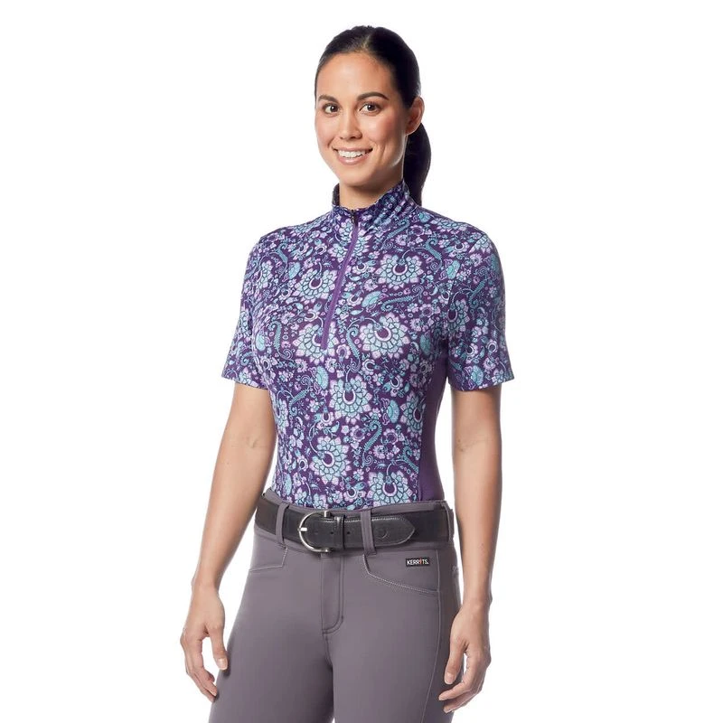Fun, equine-inspired prints dance across this super breathable top, camouflaging and hiding dirt as flattering contrast side panels slenderize riders silhouette.