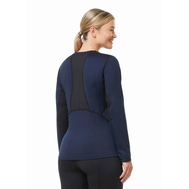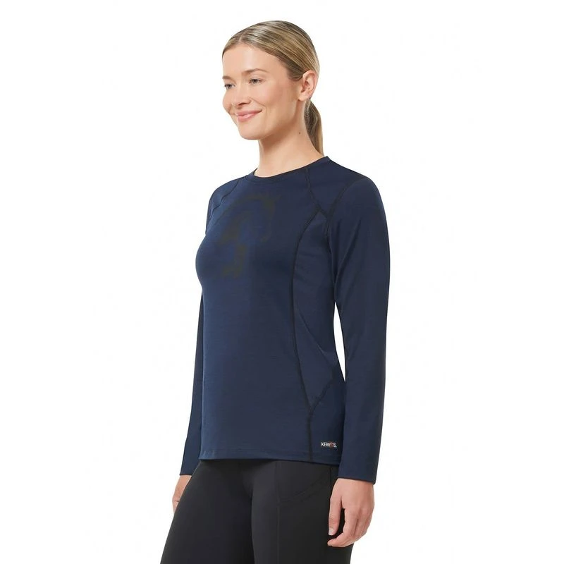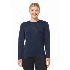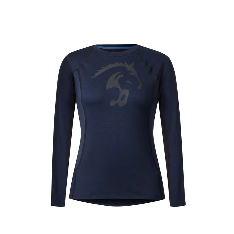 Kwikwarm technology stores heat to keep riders warm and keeps odors at bay permanently with anti-microbial properties. Coolpass panels placed in high sweat zones are moisture wicking and dry quickly. Made to layer with flat seams and a flattering, body-hugging fit.