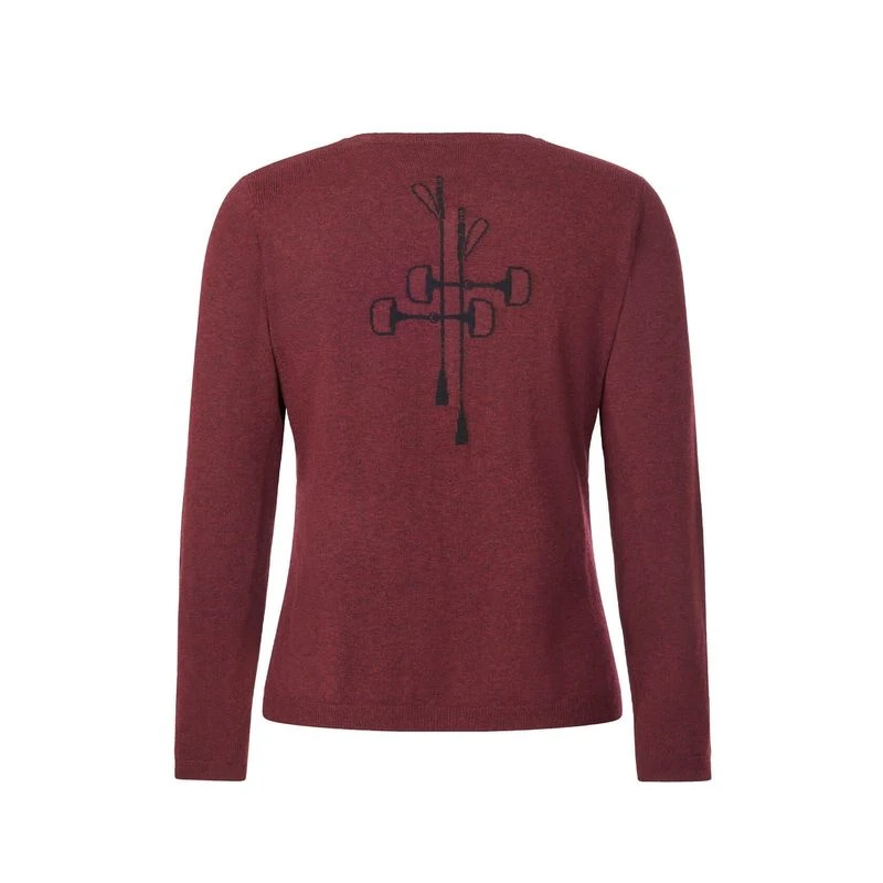 This stylish twist on a classic sweater delivers mid-weight warmth in a flattering, relaxed feminine cut with an eye-catching Crop N Bit design on the back proclaiming your equestrian allegiance.