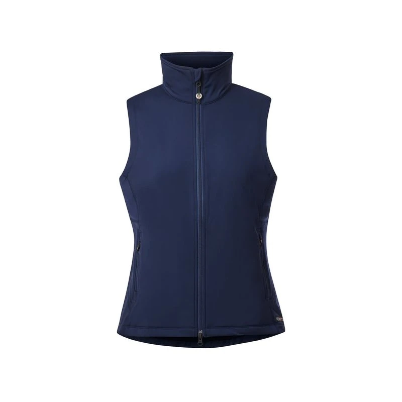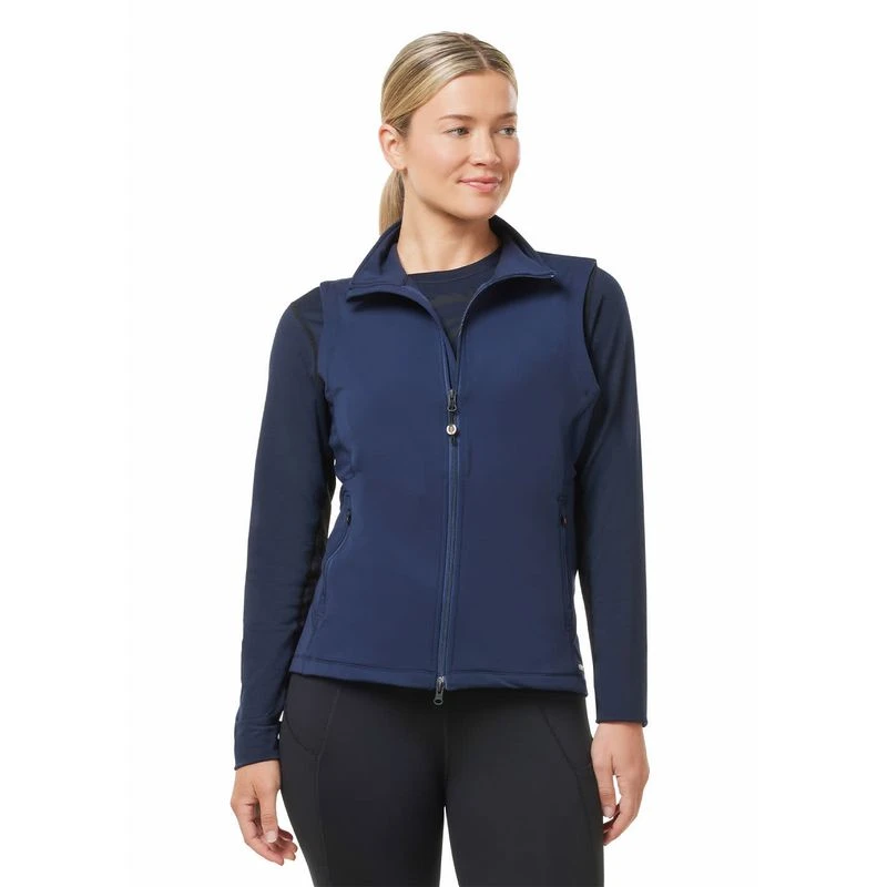 This soft and stretchy lightweight fleece vest delivers versatile core insulation in a feminine fit perfect for layering. Brushed fleece inside keeps riders cozy while the smooth exterior sheds hay, horsehair, and dirt. Two-way zipper adds in-saddle performance along with flattering hip coverage. Fleece-lined zip pockets will make you smile each time you slip your hands inside. Wash cold, tumble dry low.