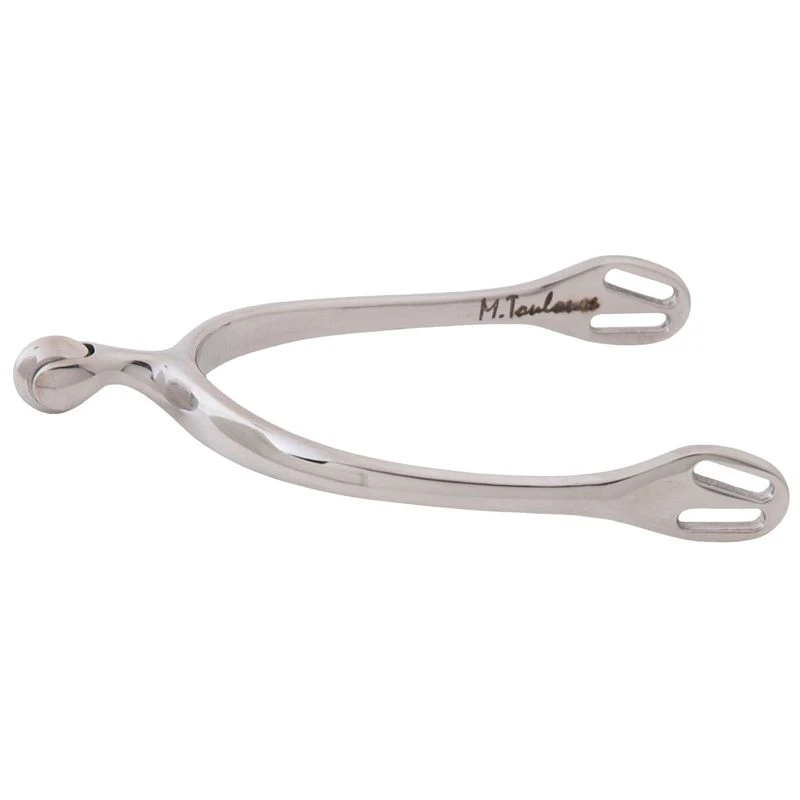 The M. Toulouse Soft Touch Spur Small Vertical Ball Spur features a small ball end positioned vertically. Measures 1 1/8-inch from boot to tip