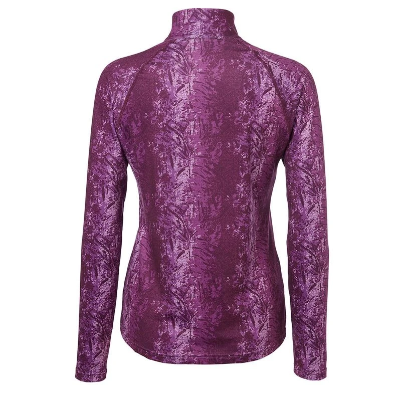 Functional, full stretch tech top in an all over print. Features soft brushed inside, quick – drying fabric and high collar with 1/3 front zipper and lock zipper pull.