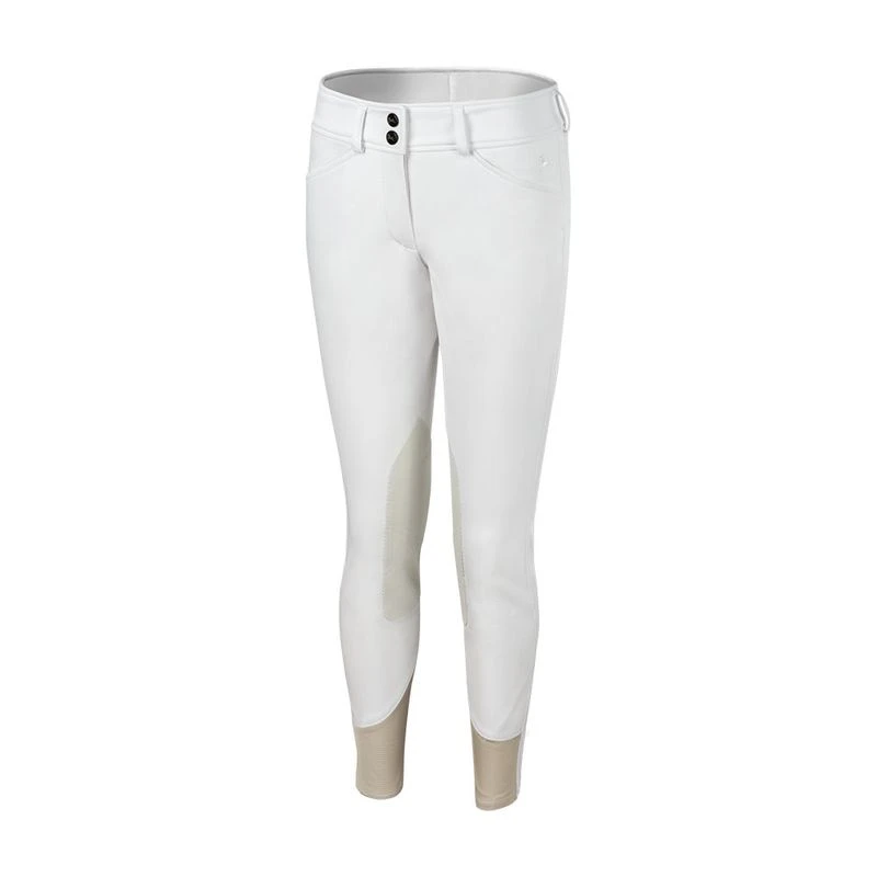 With a natural rise front zip and euro seat, the Avery features premium quick dry and stretch fabric that provides amazing hand-feel, sculpt, and coverage. The fabric covered interior waistband and mesh lower leg panels provide ideal comfort. Premium Clarino knee patches are naturally supple and breathable while presenting the elegant look of real suede, yet it can withstand intense abrasion. R.J. details on the front closures and pocket complete the design.
