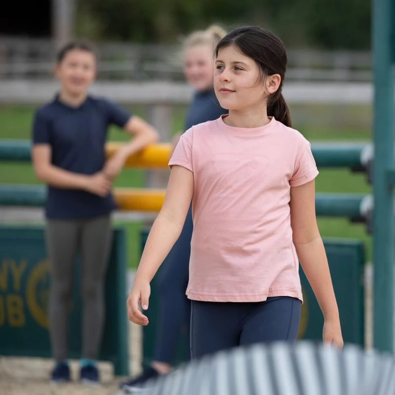 The Repose t-shirt looks equally good paired with jeans or breeches. Styled for a casual look with a dipped hem and turn-up short sleeves, a satin inner neck binding and self-color printed logo add interest.