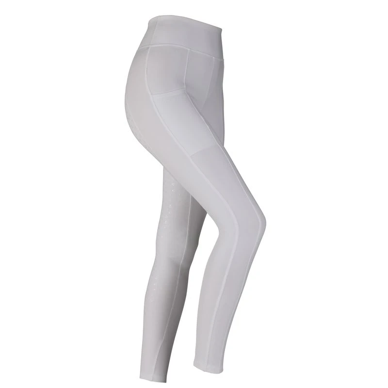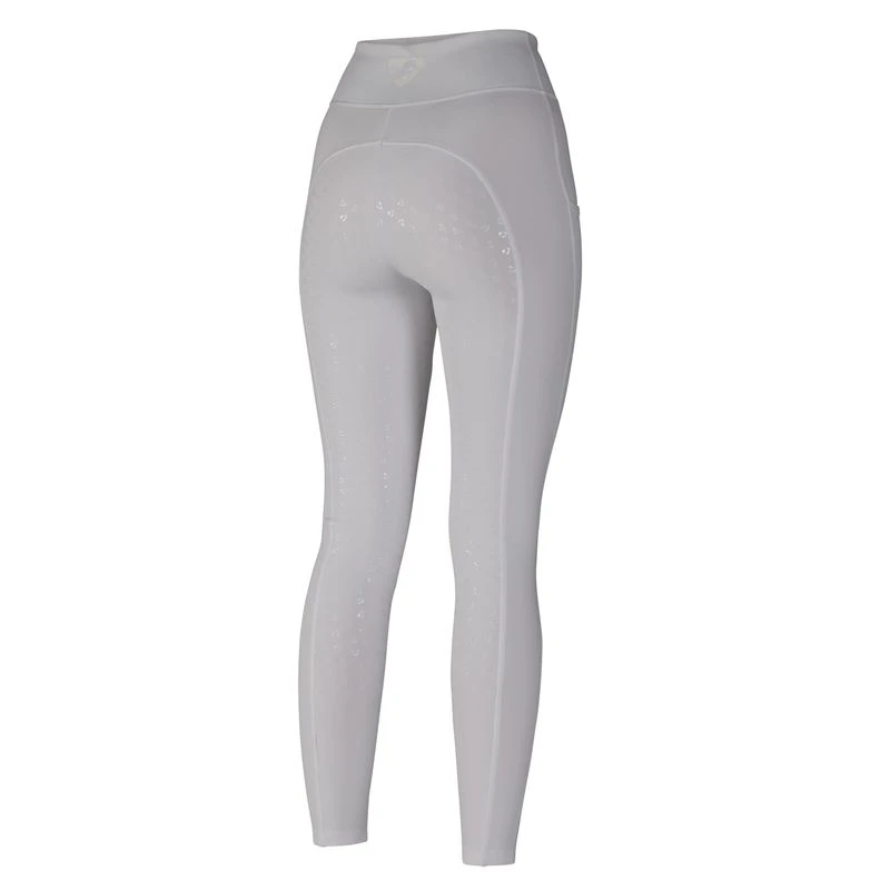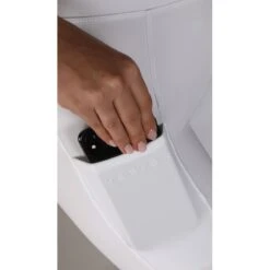 These tights have the substantial feel of breeches with traditional competitive colors and a silicone full seat. The have a high rise pull on waist, and cuff bottoms making them super comfortable. The cell phone pocket on the side is super convenient, but not obvious.