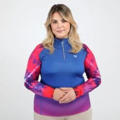 Designed to coordinate with the Hyde Park Hat Cover and Breeches. The shirt features: quick dry stretch fabric, zip neck, flatlock seams, decorative prints, and Aubrion branding.